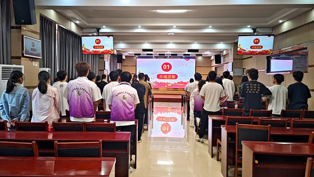 大会在激昂的团歌声中拉开序幕,全体人员起立,歌声嘹亮,满含青年的蓬勃朝气与青春活力,仿佛吹响了向社会实践进军的号角。