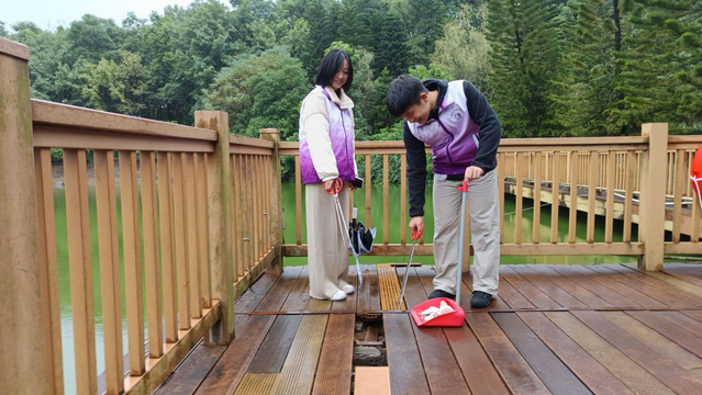 活动当天,志愿者们带着垃圾袋、垃圾夹等工具,沿鉴湖岸线有序开展清理工作。他们的身影穿梭在湖光草木间,成为鉴湖沿岸一道靓丽的风景线。志愿者们弯腰俯身的身影与清澈的湖水、金黄的草木相映成景,用实际行动践行“生态保护,青年先行”的理念。