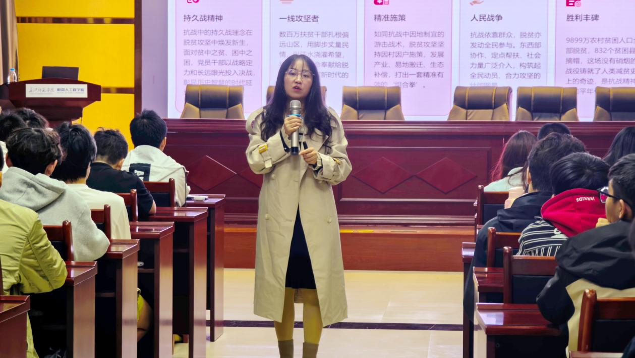 为引导青年学生铭记抗战历史、传承抗战精神,坚定理想信念,2025年11月11日,机器人工程学院开展 第二十期“青马工程”大学生骨干培训班第四次培训课。由2024级辅导员高红平担任主讲人。