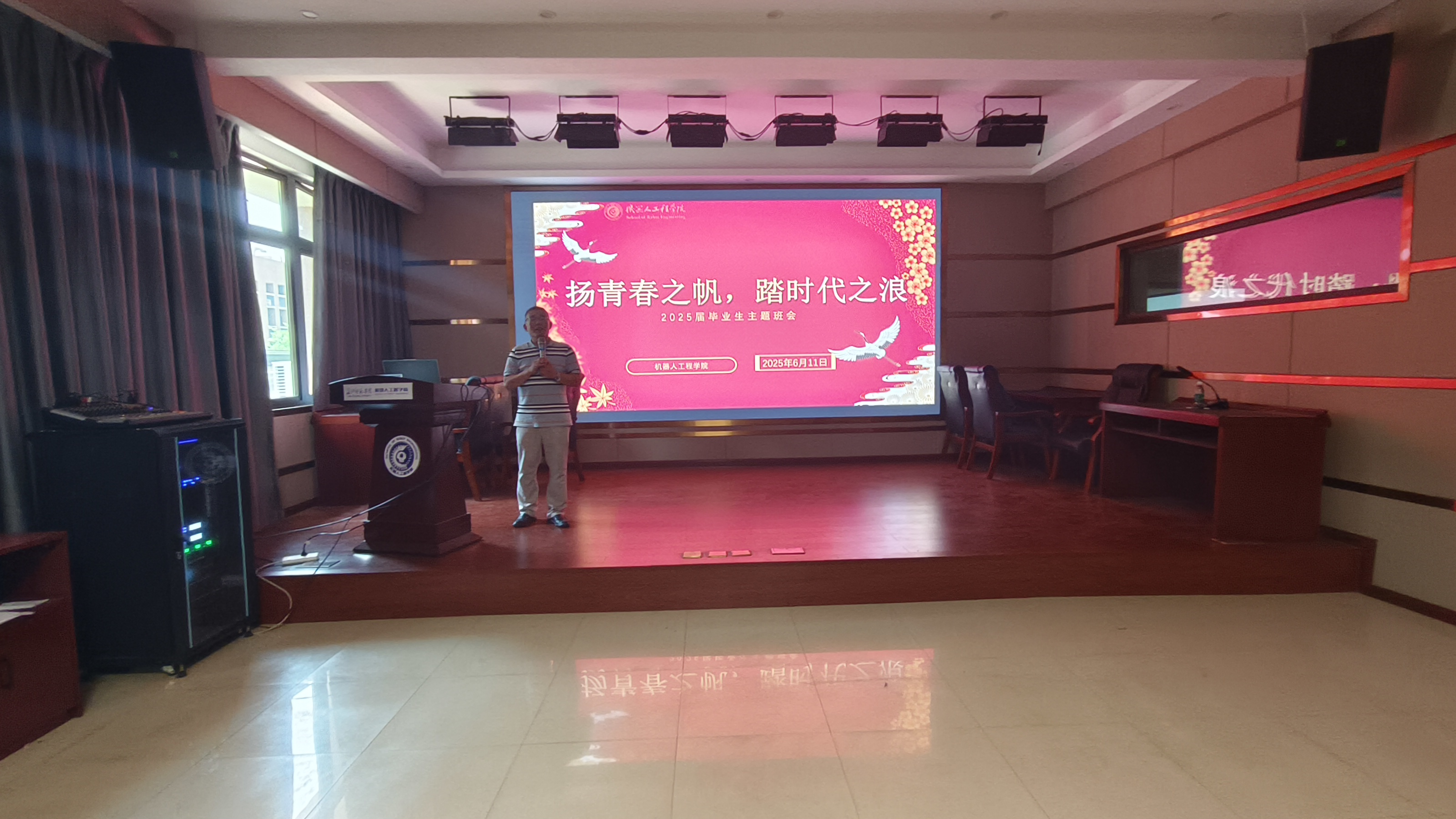 为助力毕业生更好地肩负时代使命、开启新征程,6月11日,机器人工程学院在至定北楼 206 会议室开展 “扬青春之帆,踏时代之浪” 毕业生主题班会,学院副院长万浩川担任主讲人。