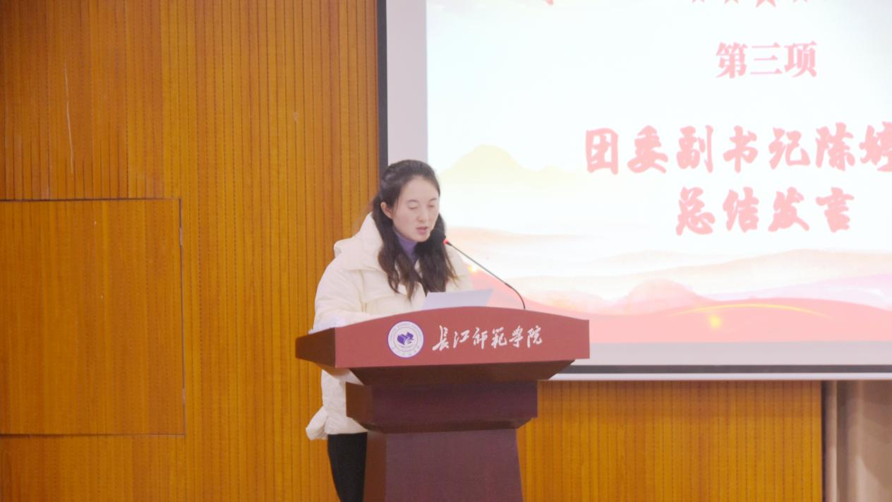 随后,陈婷婷老师作总结发言。她对同学们一年来的辛勤付出给予了高度评价,强调学院的每一步发展都离不开师生的齐心协力。她鼓励全体“党团学”干部要始终保持积极进取的精神风貌,勇于突破创新,以青春热血为学院建设贡献力量。